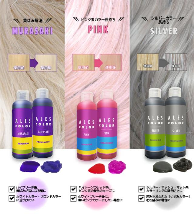 ブリーチ後の黄ばみを抑え、白色やアッシュ系カラーの色が持続します。リピジュア(ヒアルロン酸の約2倍の保湿力)配合で、ブリーチ等で傷んだ髪を優しく洗い、洗い上り時のキシミを抑えしなやかにします。シャンプーとトリートメントを併用することにより、ブリーチの施術などで起こる黄ばみを、染料配合のシャンプーで色素補給し解消。トリートメントでさらに着色コーティングします。