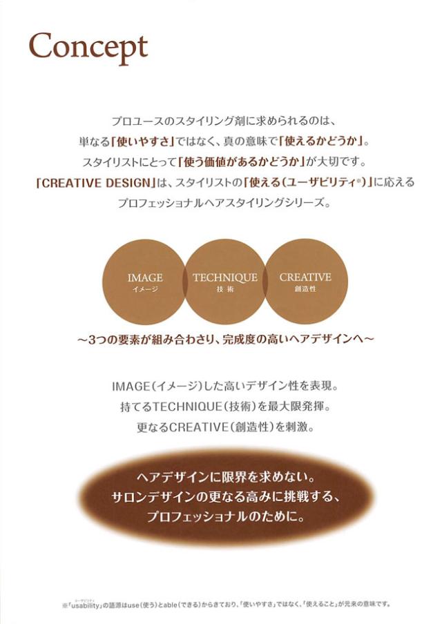 ヘアデザインに限界を求めない、サロンデザインの高みに挑戦するスタイリストの「使える(ユーザビリティ)」に応えるスタイリングシリーズです。