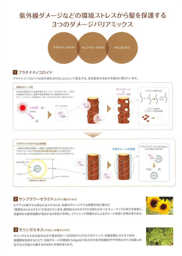 ●紫外線ダメージなどの環境ストレスから髪を保護するダメージバリアミックス配合※