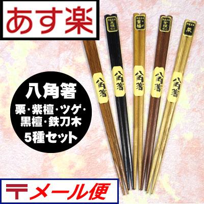 うるし塗箸 8角 5膳セット 栗・紫檀・ツゲ・黒檀・鉄刀木 5種セット 【あす