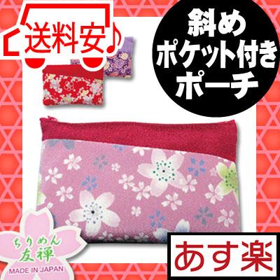 縮緬 ちりめん 斜め ポケット 付き ポーチ 和雑貨 ( 民芸 小物 おみやげ かわい