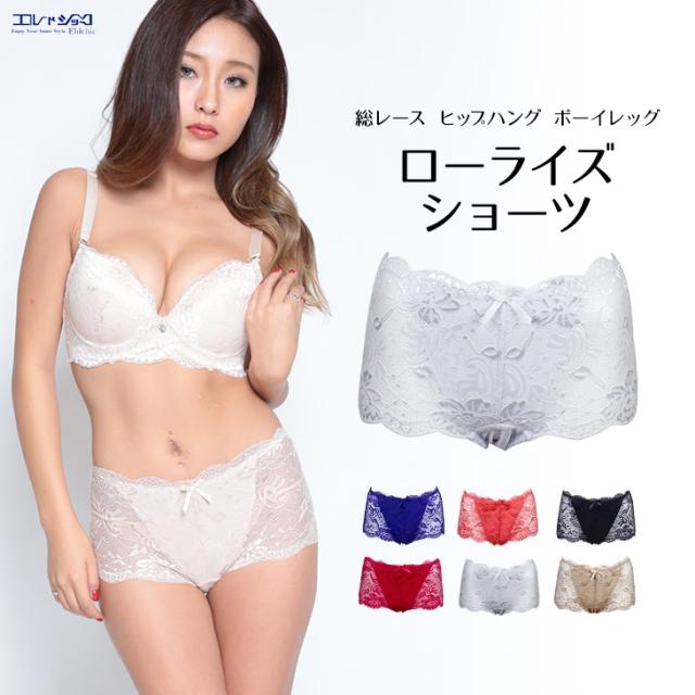 総レース ヒップハング ボーイレッグ ローライズショーツ 1分丈 | ||||
