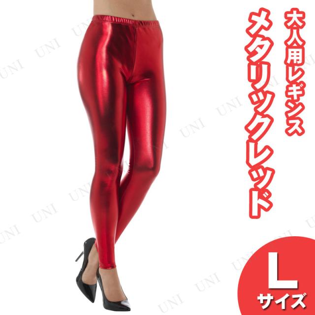 コスプレ 仮装 80'sメタリックディスコレギンス レッド L Smiffy's コスプレ小物 タイツ パンスト 女性用L 光沢感 ネオンカラー