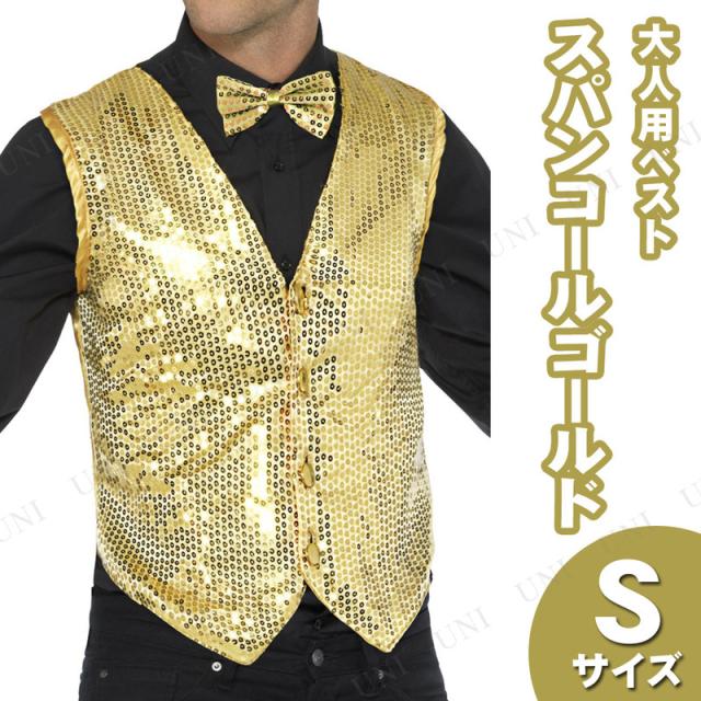 コスプレ 仮装 スパンコールベスト ゴールド S Smiffy's コスチューム 仮装 コスプレ衣装 パーティー用品 男性用S 大人 ハロウィン スパンコール仕様 ボタン留め アジャスター付