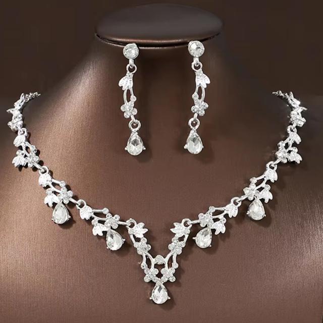 フェアリークリスタルブライダルジュエリーセット(ピアス&ネックレス) 首飾り チョーカー レディース 結婚式 パーティ 20G 20ゲージ ラインストーン ジルコニア 妃 姫 披露宴 ドレス プレゼント ウエディング コスプレ 衣装 発表会 花飾り ウェディング 記念写真