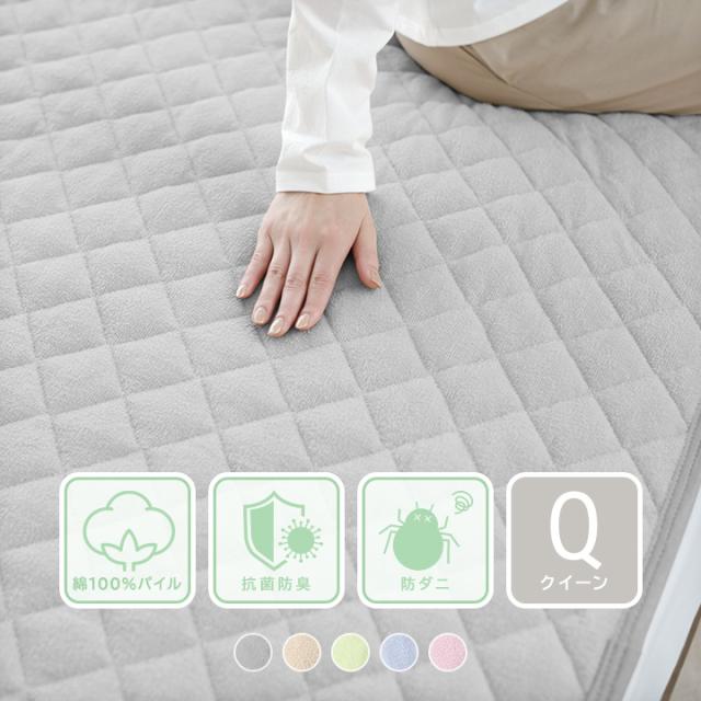 敷きパッド クイーン 綿100% タオル地 オールシーズン クイーンサイズ 綿 パイル生地 抗菌防臭 防ダニ 春 夏 秋 冬 SS009