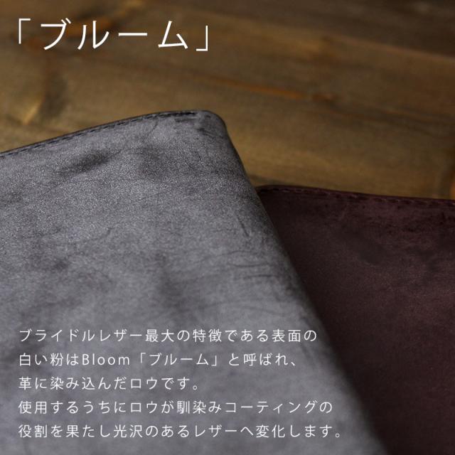 ブライドルレザーの表面に白く浮き出ているロウは「ブルーム」と呼ばれており、ブライドルレザー最大の特徴です。
