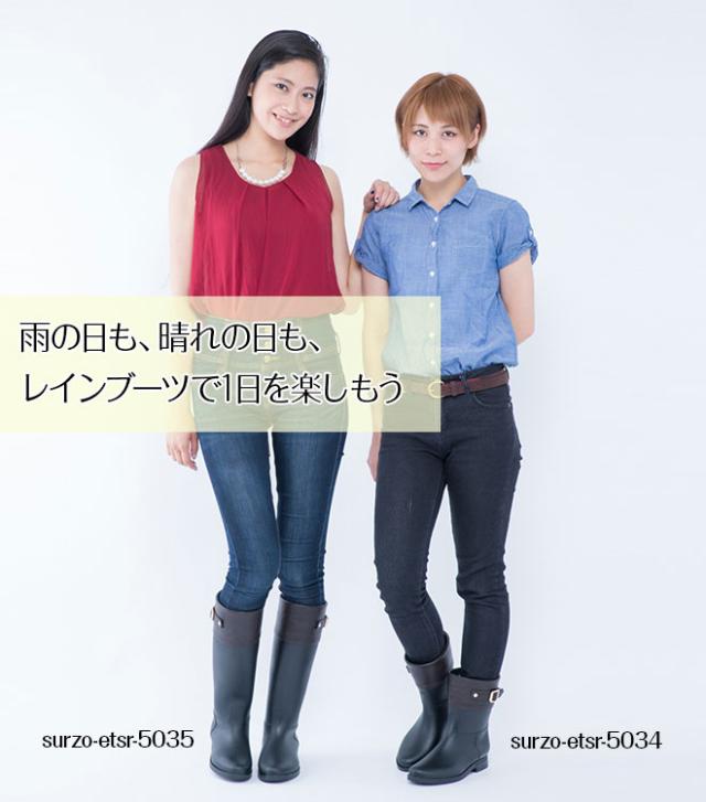 レインブーツ 長靴 【全品P3倍】 レディース SURZO ETSR-5034 おしゃれ ショートブーツ レインシューズ 新品 アウトレット 海 節