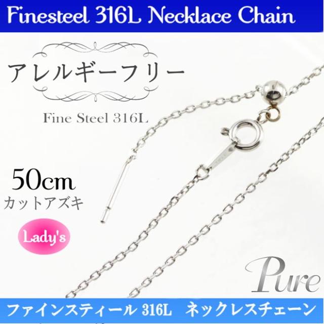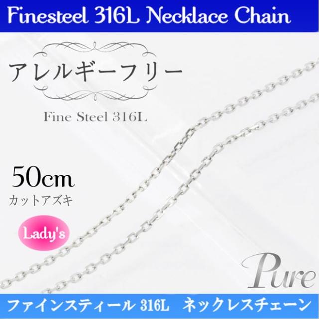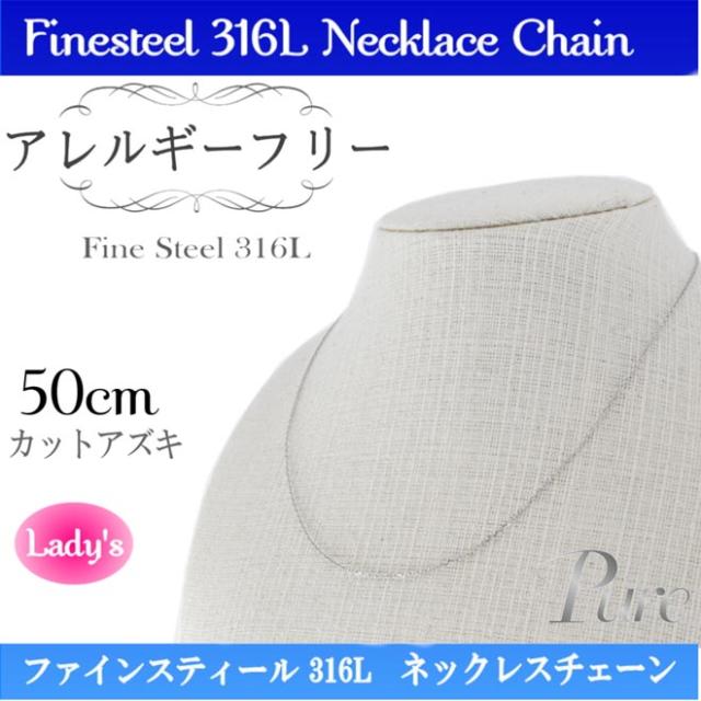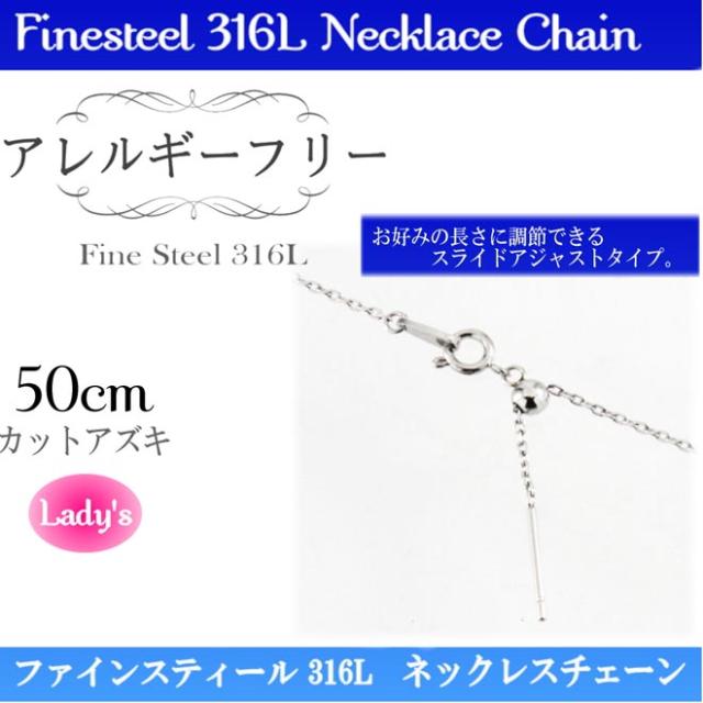 サージカルステンレス 金属 ノンアレルギー カットアズキ チェーン ネックレス ペンダント 50cm PNC-211