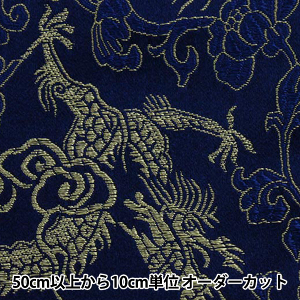 【数量5から】生地 『コスチュームチャイナドレス花と龍の柄 CDC8700-R 76:紺×金糸』