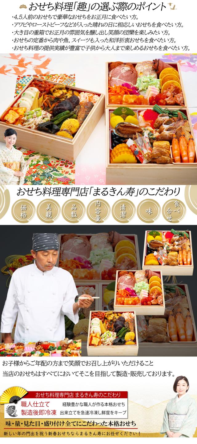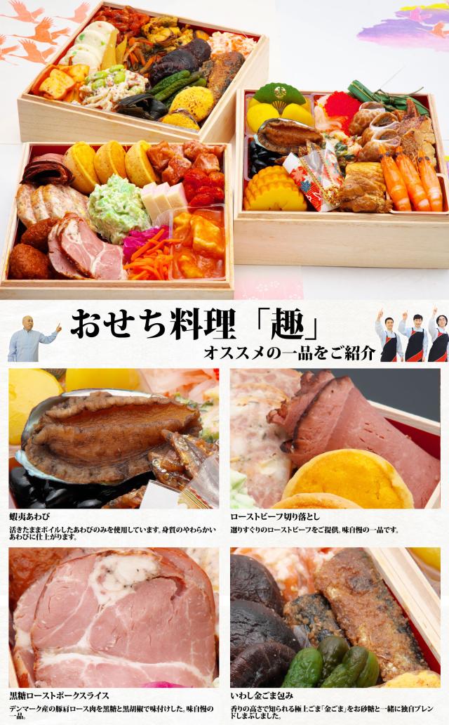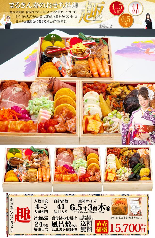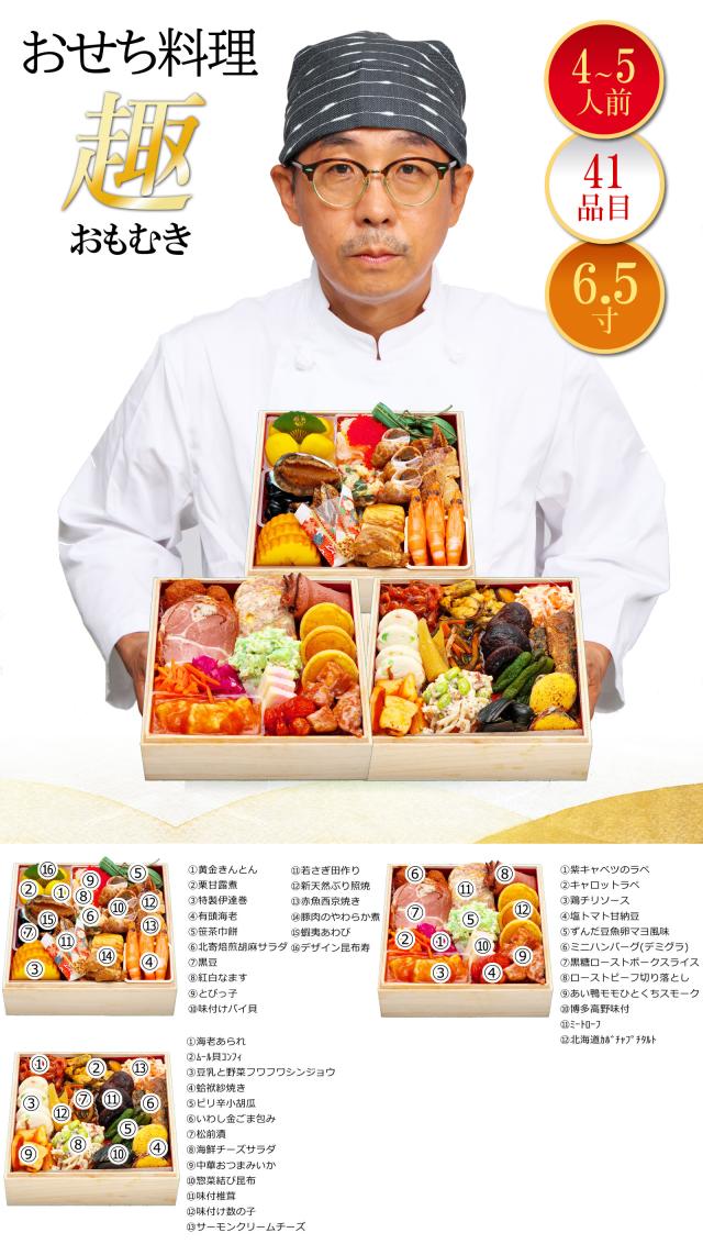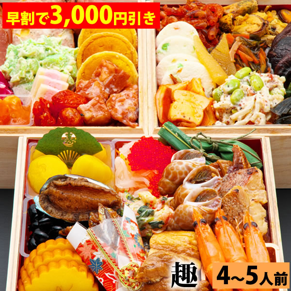 三段重おせち「趣」 6.5寸4人前5人前41品入 全国送料無料 定番 高級 有名店 おせち
