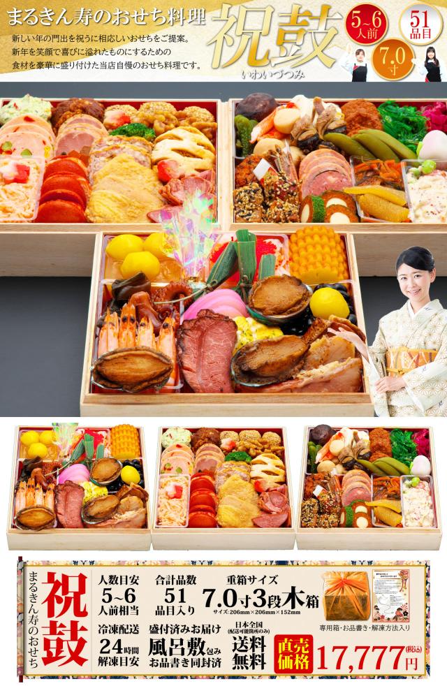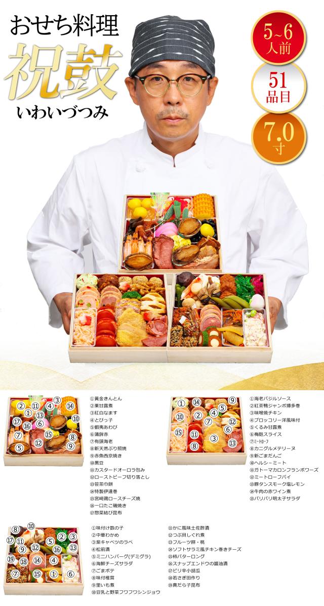 三段重おせち「祝鼓」 7.0寸5人前6人前51品入 全国送料無料 定番 高級 有名店 おせち