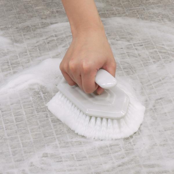 空気を含んでたっぷり泡立つ先割れ毛を使用しています。ガンコな汚れもスッキリ落とすコシのあるブラシです。タイル床や目地に付いた湯垢やカビ掃除に適しています。