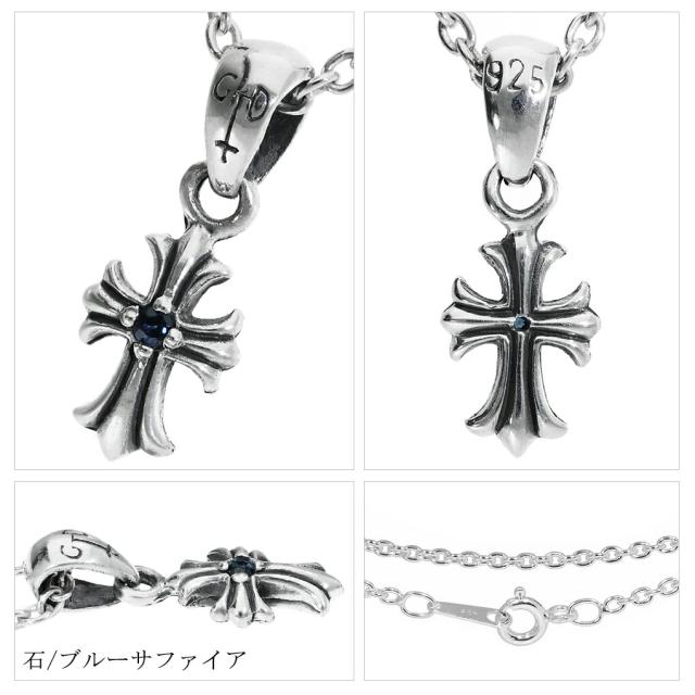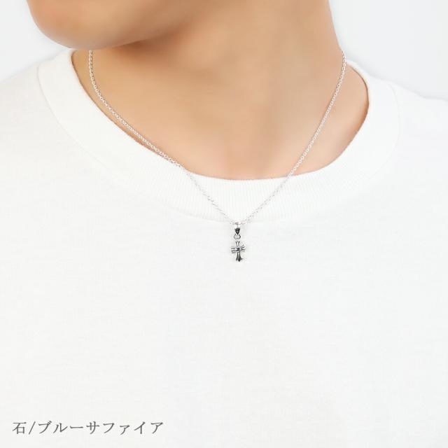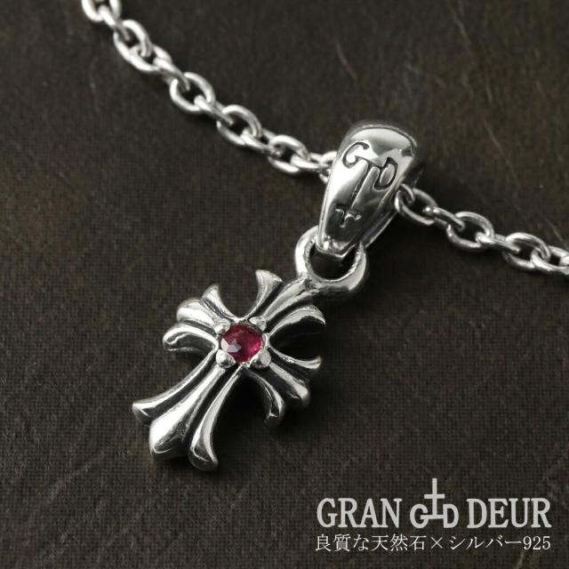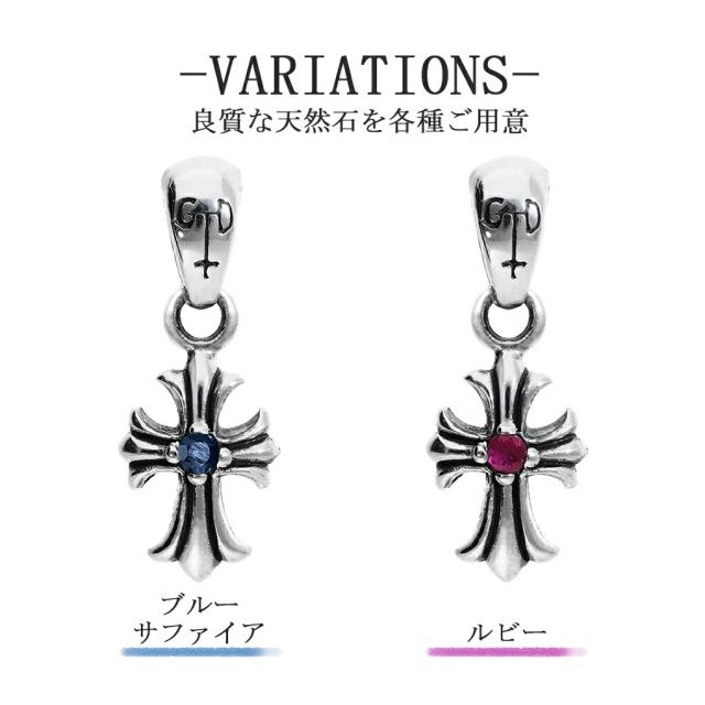 GRAN DEUR ミニ フレア クロス 選べる 天然石 シルバー ネックレス サファイア ルビー ペンダント ペンダントトップ 十字架 クロスネックレス メンズ