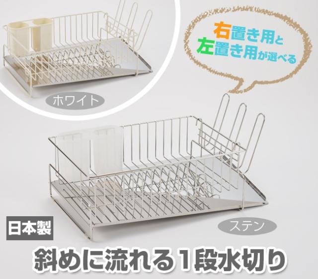 ステン/ホワイト 右置用/左置用 水切り 1段 斜め 日本製