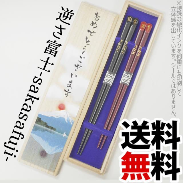 名入れ ギフト 夫婦箸 ペア セット オリジナル富士山の桐箱付き 逆さ富士 敬老の日 誕生日