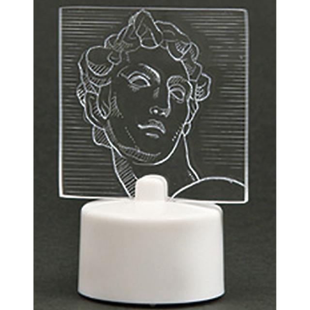 ■備考:板:50×50×4mm、台:φ38×30mm、ライト台×1、アクリル板×1、ボタン電池(CR2032)×1、37g、台座:ABS、板:アクリル、化粧箱入、83×45×40mm
