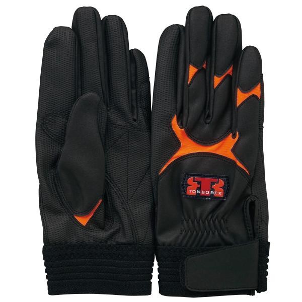トンボレックス 合成皮革手袋 E-838R 薄手 ガンカット ブラック×オレンジ S〜LL 滑り止め フィット感