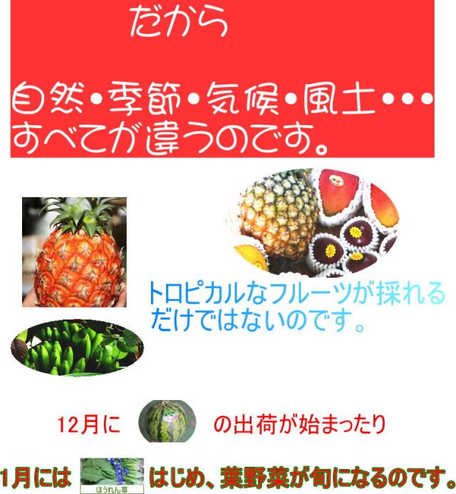 沖縄の大自然で育った果物、野菜を是非、味わってみてください!