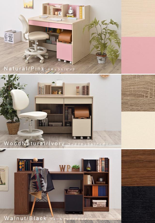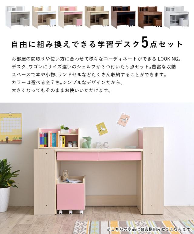 ジュニア 学習机 学習デスク 5点セット 幅100cm LOOKING3(ルッキング3) 7色対応 勉強机 勉強デスク コンパクト 子供 子ども 子供部屋 シンプル おしゃれ 組み合わせ 組み換え 女の子 ワゴン シェルフ 可動棚