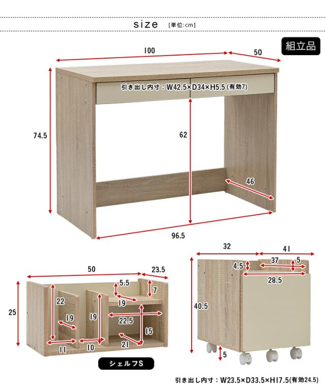 デスク:W100 x D50 x H74cm