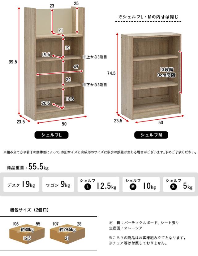デスク、ワゴン、シェルフS、シェルフM、シェルフL
