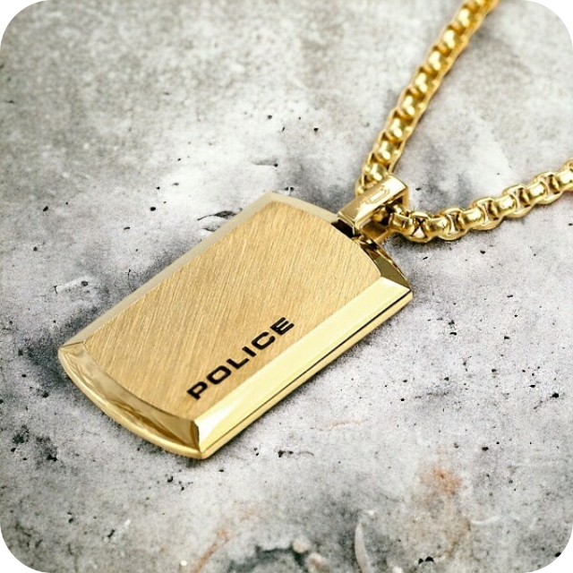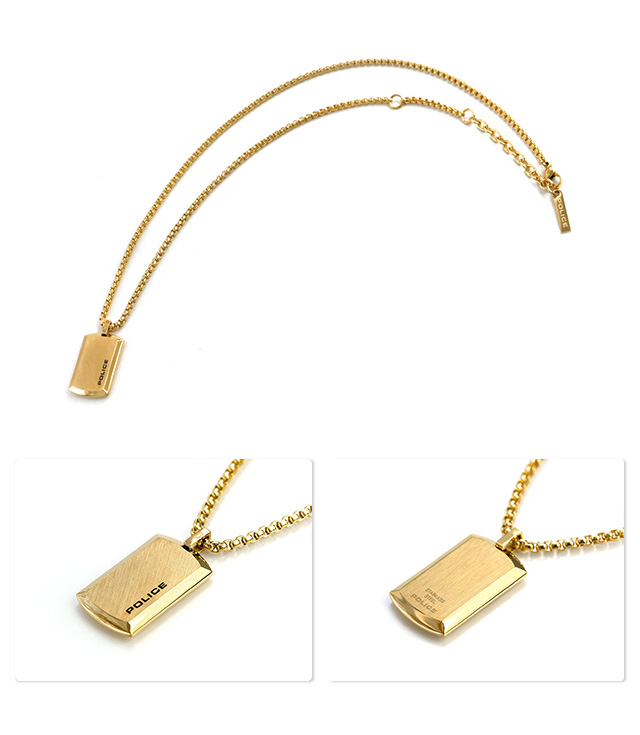 ポリス ネックレス POLICE チェーン プレート ペンダント ゴールド ステンレス 名入れ可能 25988PSG02 メンズ 男性用