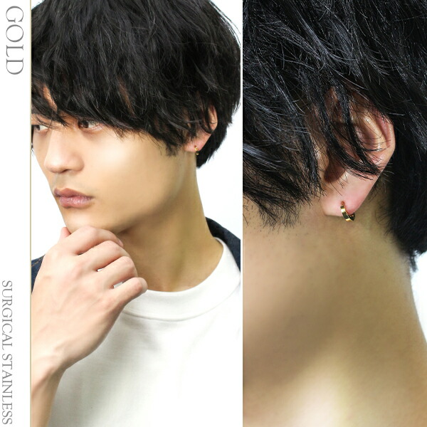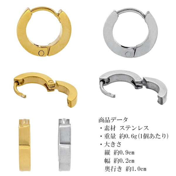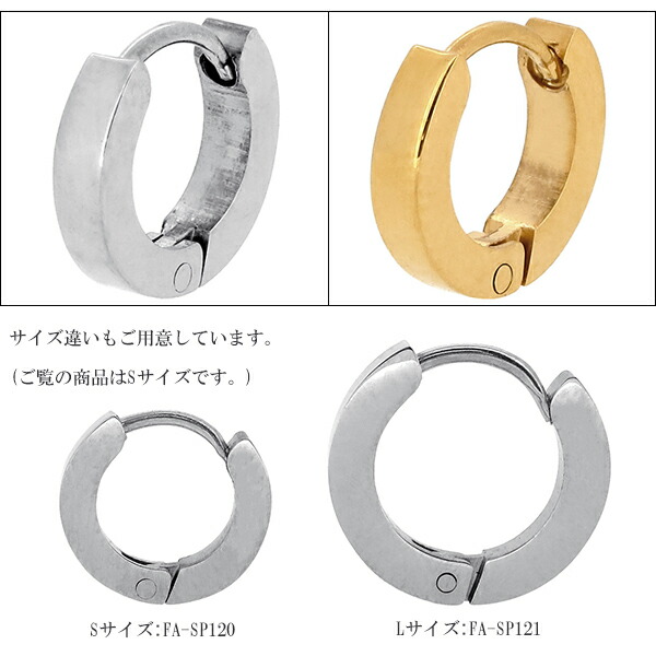 シンプル ソリッド ステンレス フープピアス Sサイズ 1P 片耳用 メンズピアス stainless フープ 中折れ式 カラー 2色 銀色 金色 男性用