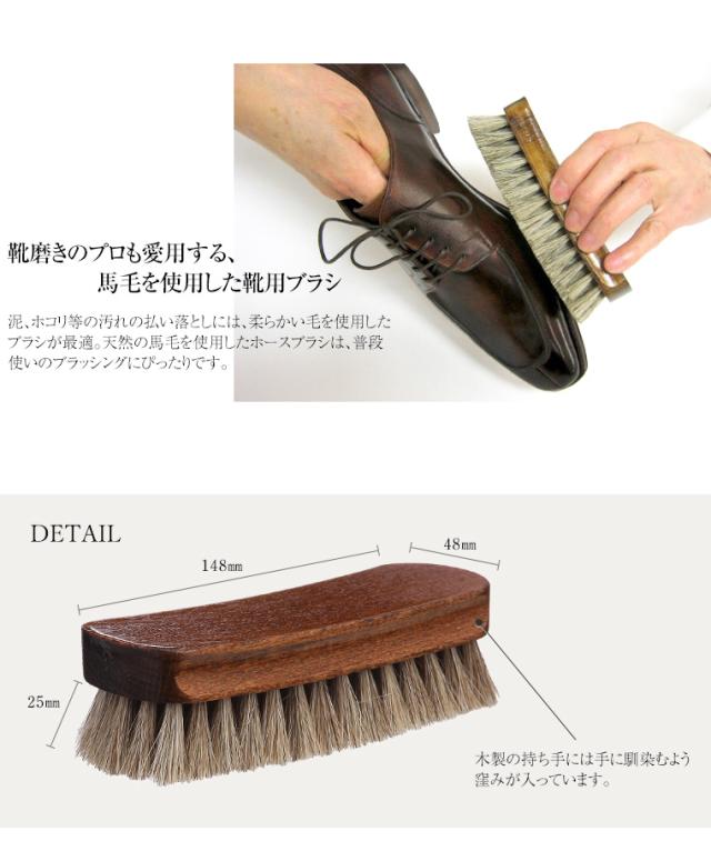 馬毛ブラシは、毛先が細く柔らかい毛で、靴についたホコリを落とすのが主な役割の靴磨き 馬毛ブラシです。