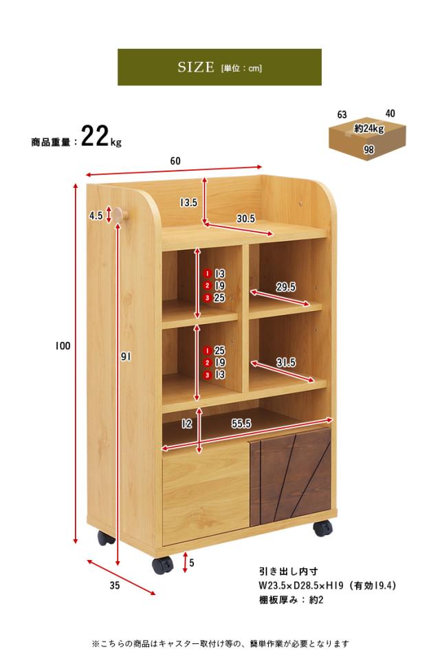 【国産/簡単組立/スリムタイプ】幅60cm ランドセルラック ramo(ラーモ) キャスター付き ナチュラル/ダークブラウン ラック おしゃれ 子供部屋 引き出し 本棚 男の子 女の子 子供用 木製 日本製 2人用 大容量