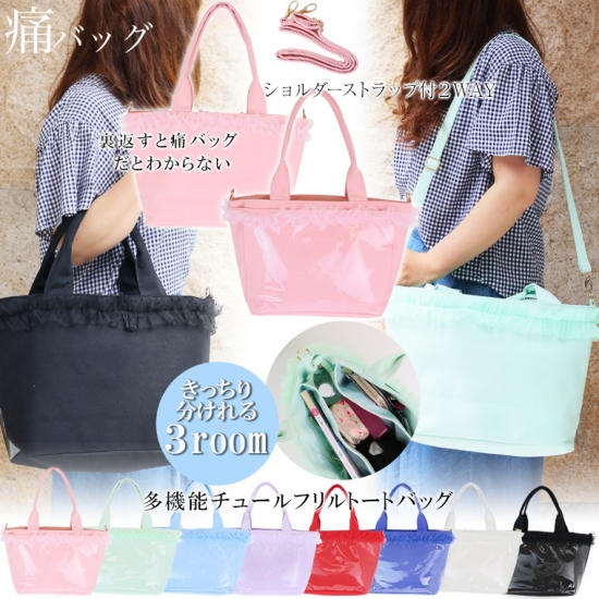ショルダー付き多機能チュールフリルトートバッグ 痛バック 痛バ トート 痛バ zakkamart ザッカマート