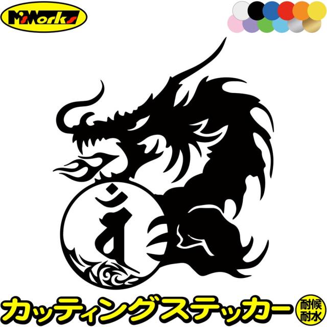 ドラゴン 梵字 ステッカー 干支梵字 バン 大日如来 未 申 ひつじ さる ドラゴン dragon 龍 左 10L サイズL カッティングステッカー 全12色 車 かっこいい おしゃれ バイク ステッカー 防水 耐水 アウトドア デカール 転写シール 210mmX184mm