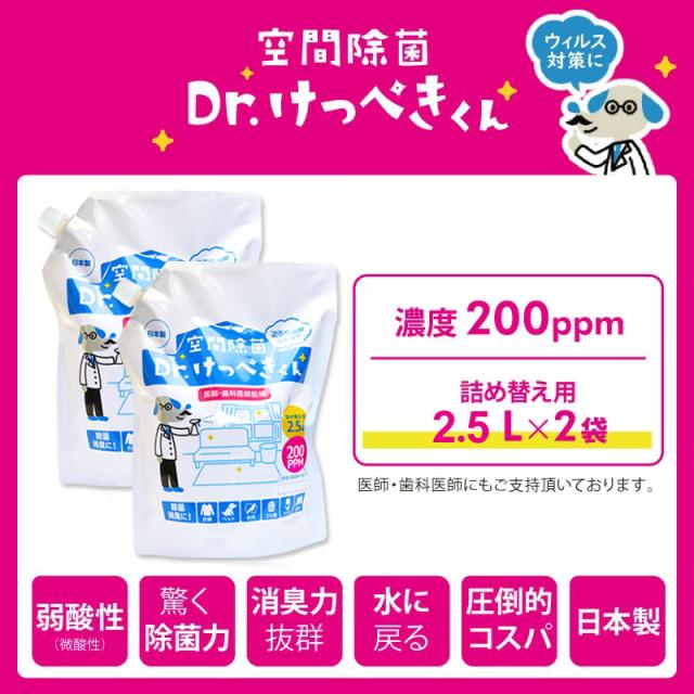 次亜塩素酸水 空間除菌Dr.けっぺきくんPRO 《 200ppm 》 2.5L×2袋