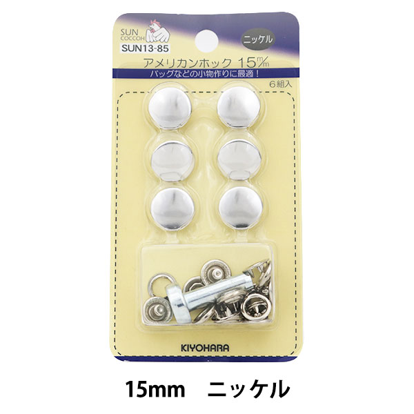 ボタン 『アメリカンホック (打具付) 15mm 6組入 SUN13 ニッケル (シルバー)』 SUNCOCCOH サンコッコー KIYOHARA 清原