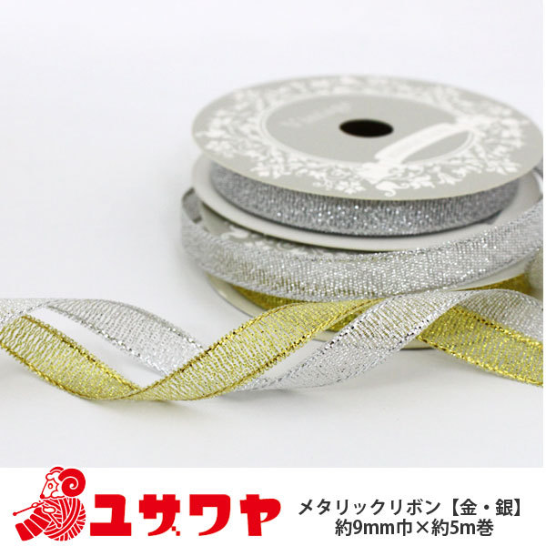 メタリックリボン 幅9mm×約5m巻 ゴールド [ラッピング メタル 金 銀 ゴールド シルバー メタル]