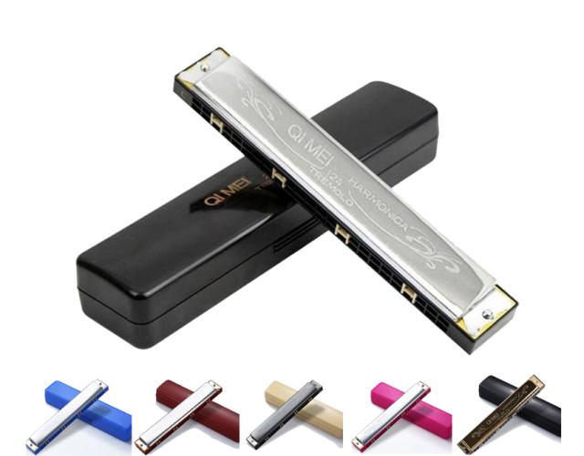 ハーモニカ C調 24穴 複音 初心者 子供向け 入門 練習用 クリーニングクロス 収納ケース付き 樹脂ボディ
