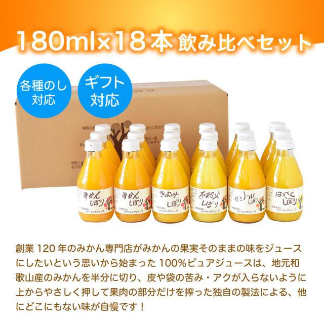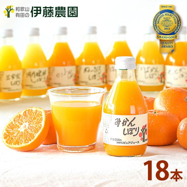 伊藤農園 100%ピュアジュース みかんジュース・オレンジジュース 180ml×18本 [有田みかん・国産(和歌山産柑橘)・無添加・ストレート]