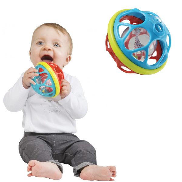 赤ちゃんの大好きな音のなるボールとくるくる回るソフィーの仕掛け付き。