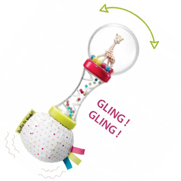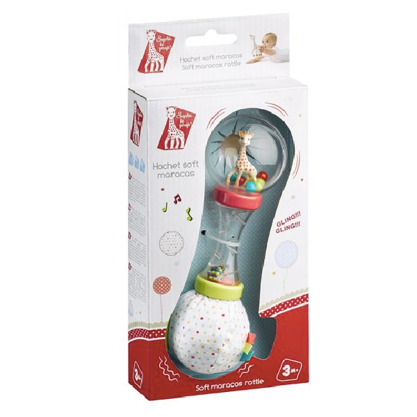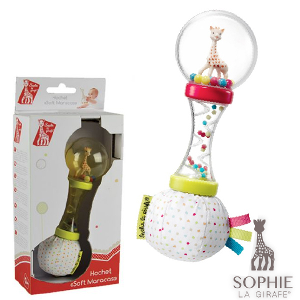 いつの時代も愛される赤ちゃんのガラガラ、赤ちゃんが楽しく遊べるソフィーのマラカスラトルです。