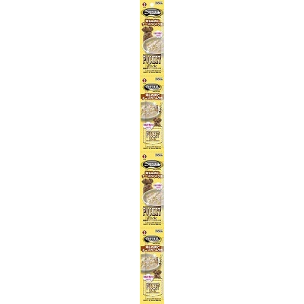 【分類】?犬用フード レトルトパウチ?【原材料】?鶏むね肉、チーズ、ミルク・乳糖フリー、増粘安定剤・加工デンプン?【保証成分】?粗たん白質 8.5%以上 粗脂肪 0.5%以上 粗繊維 0.5%以下 粗灰分 1.3%以下 水分 88.0%以下?【賞味期限】?24ヶ月?【商品サイズ】?584×45×15(mm)?【原産国または製造地】?日本