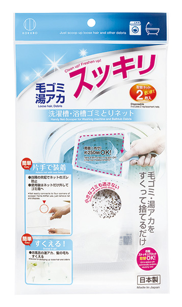 また、浴槽の水アカ・湯アカ・髪の毛等、小さなゴミも細かいネットですくえます。