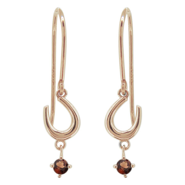 1月誕生石ガーネットを使用した10金製の、馬蹄(ホースシュー)モチーフフックピアスです。
