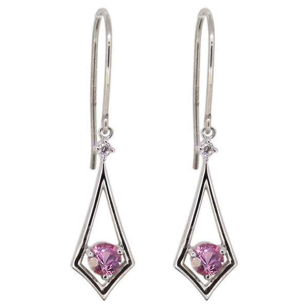 9月誕生石ピンクサファイアを使用したプラチナ製の、シンプルデザインのフックピアス(アメリカンフック)です。