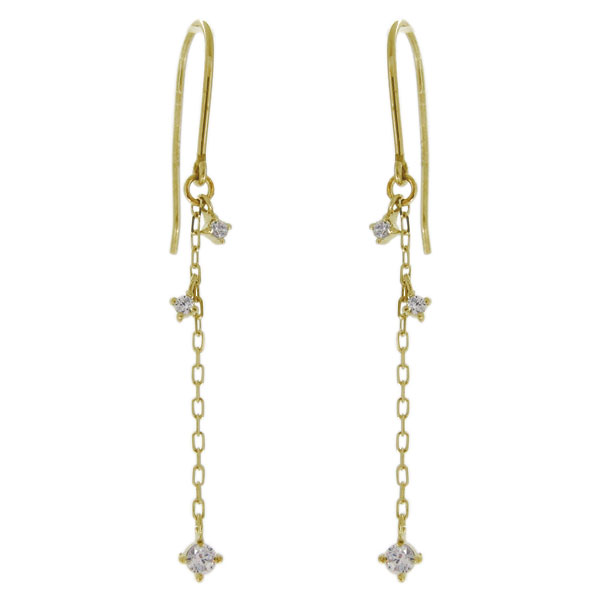 ピアス ダイヤモンド ロングピアス レディース フックピアス 10金