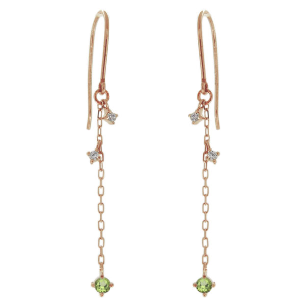 ペリドットピアス レディース ロングチェーンピアス アメリカンフック 18金