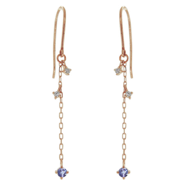 タンザナイトピアス レディース ロングチェーンピアス アメリカンフック 18金