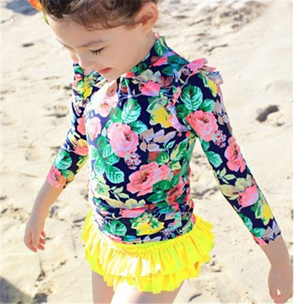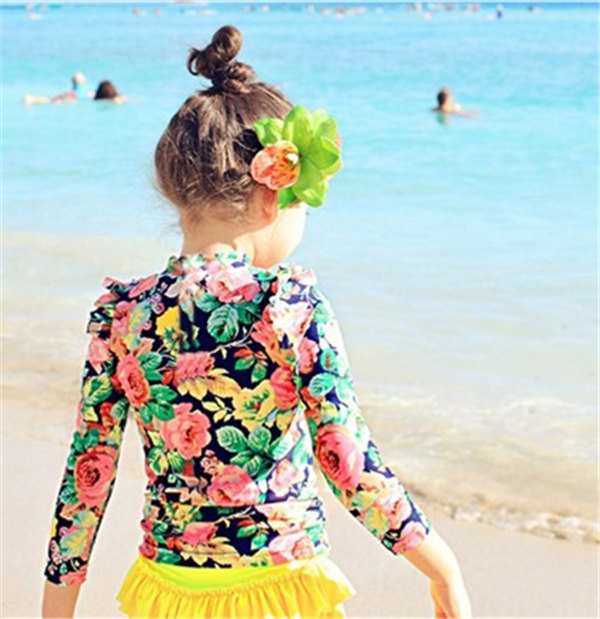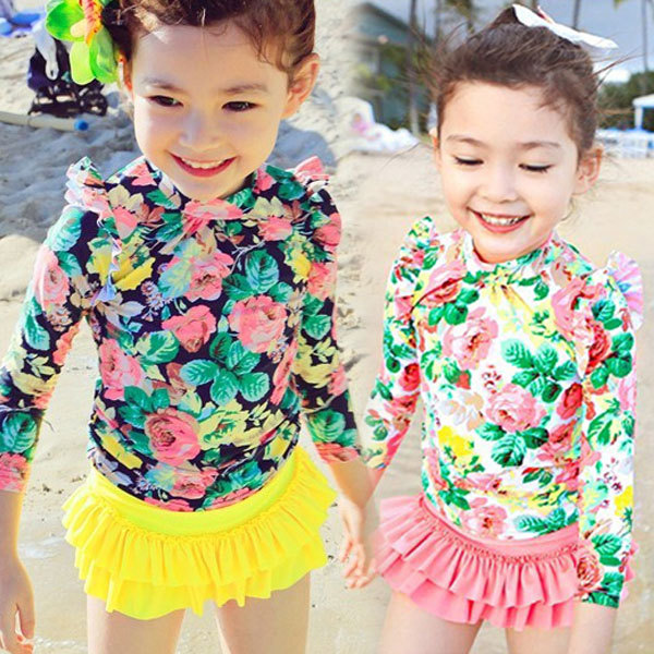 メ便送料無料 水着 セパレート 花柄 キッズ 3点セット 女の子 ラッシュガード 上下セット 長袖 スカパン 帽子付 子供