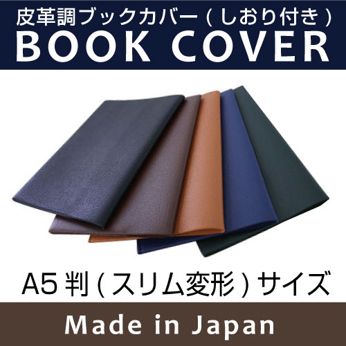 【ブックカバー ランキング1位獲得】【メール便可】ブックカバー A5判 変形 皮革調 合皮 フェイクレザー コンサイス No.10 日本製 発泡PVC しおり付き