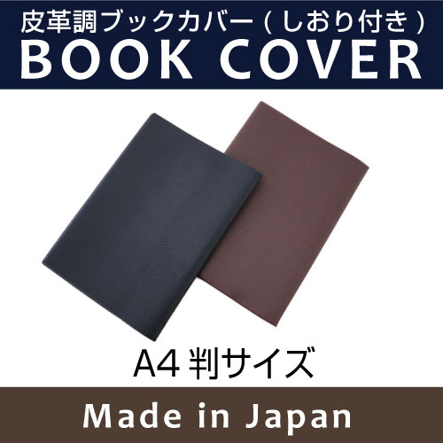 ブックカバー A4判 皮革調 合皮 フェイクレザー No.14 くっつきしおり付き 日本製 黒 茶 文房具 読書カバー ビジネスギフト メール便可