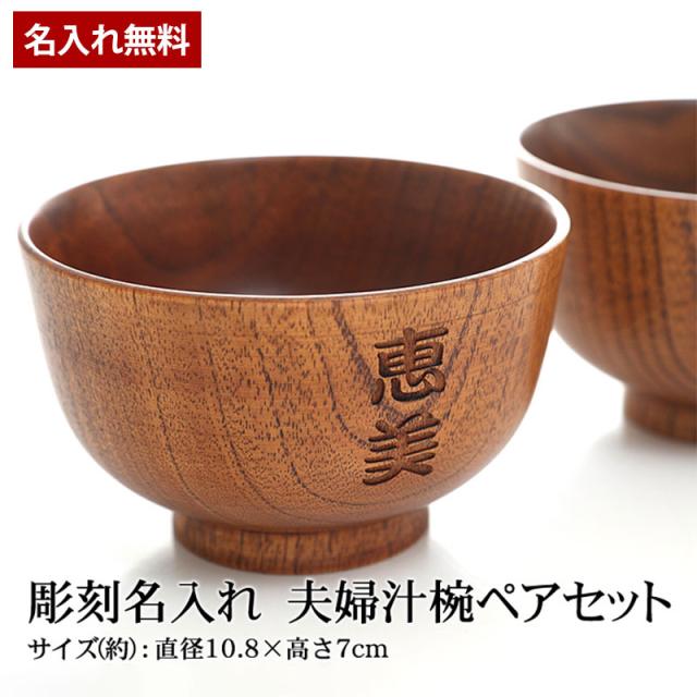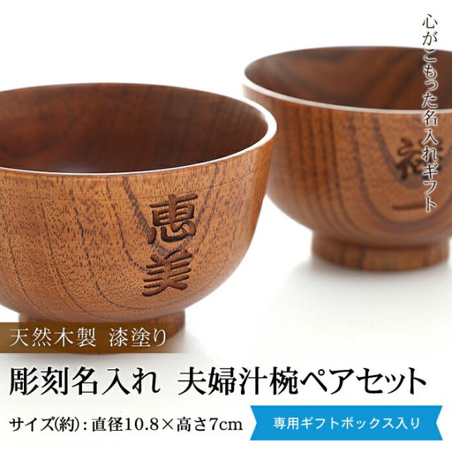 彫刻名入れ 天然木製 夫婦汁椀 ペアセット お椀 お碗 漆塗り 名入れ無料 ギフトBOX入り お茶碗 おわん スープボウル ペア ギフトセット 結婚祝い 贈り物 プレゼント 食器セット 木製 味噌汁 おしゃれ 実用的 敬老の日 孫から 送料無料